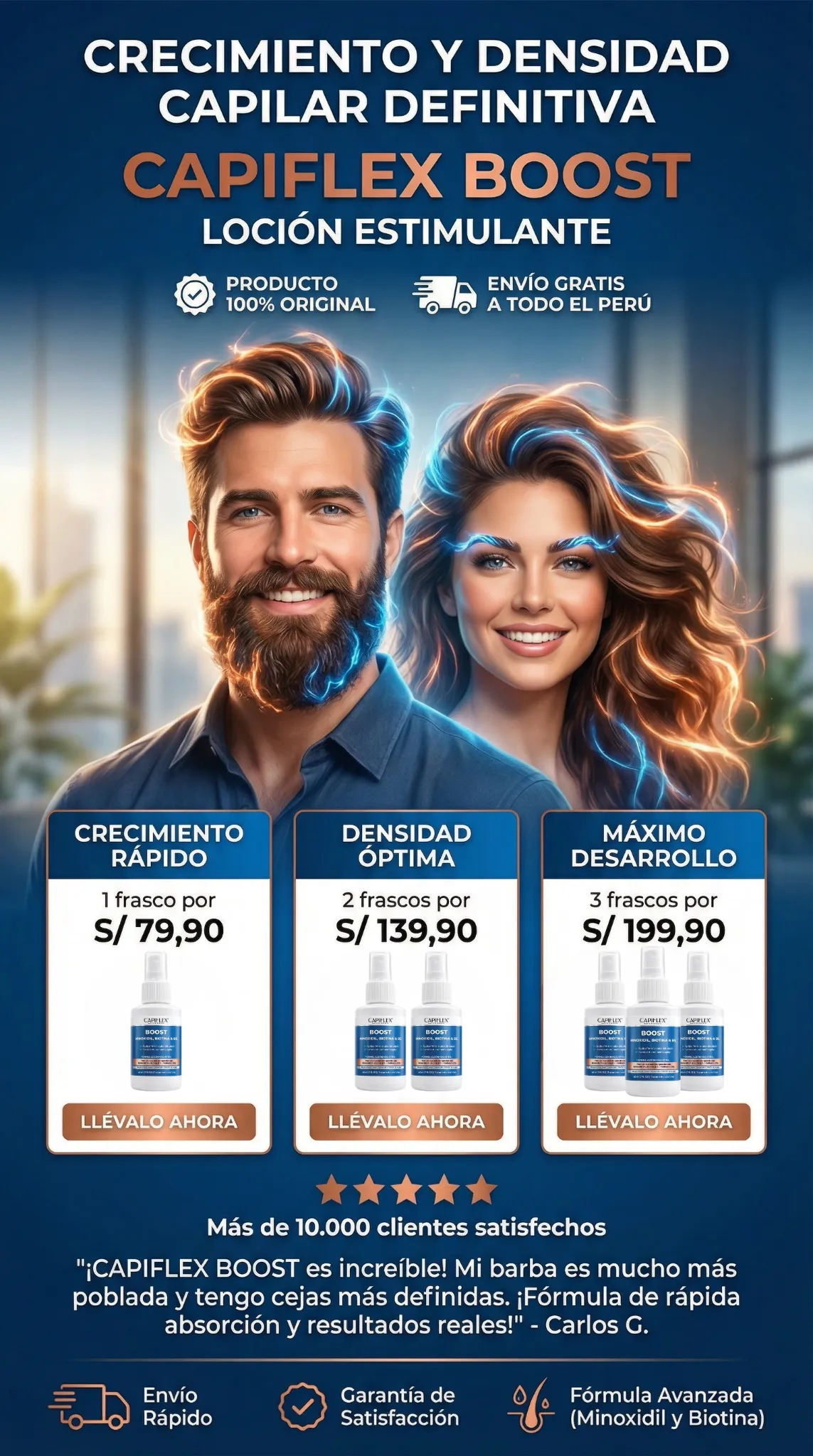 Ya tenia años perdiendo cabello y probando productos de internet sin resultados, decidi pagar la consulta con un Tricologo y me recomendó estos productos de capiflex por la concentracion de minoxidil. Despues de 4 meses de uso continuo estoy viendo muy buenos resultados sobre todo en la coronilla que era lo que mas me palteaba. el envio hasta arequipa llego en 2 dias por olva.
